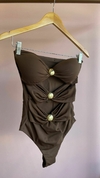 Maiô com bojo removível e alças reguláveis, garantindo conforto e ajuste personalizado, detalhe de argola metálica no entresseio que adiciona um toque moderno, confeccionado em tecido texturizado com proteção UV, oferecendo sofisticação e segurança ao sol.